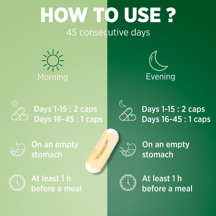 Para experimentar todos los beneficios de estas cápsulas, simplemente toma una cápsula con agua, preferiblemente antes de las comidas para maximizar su efecto.
