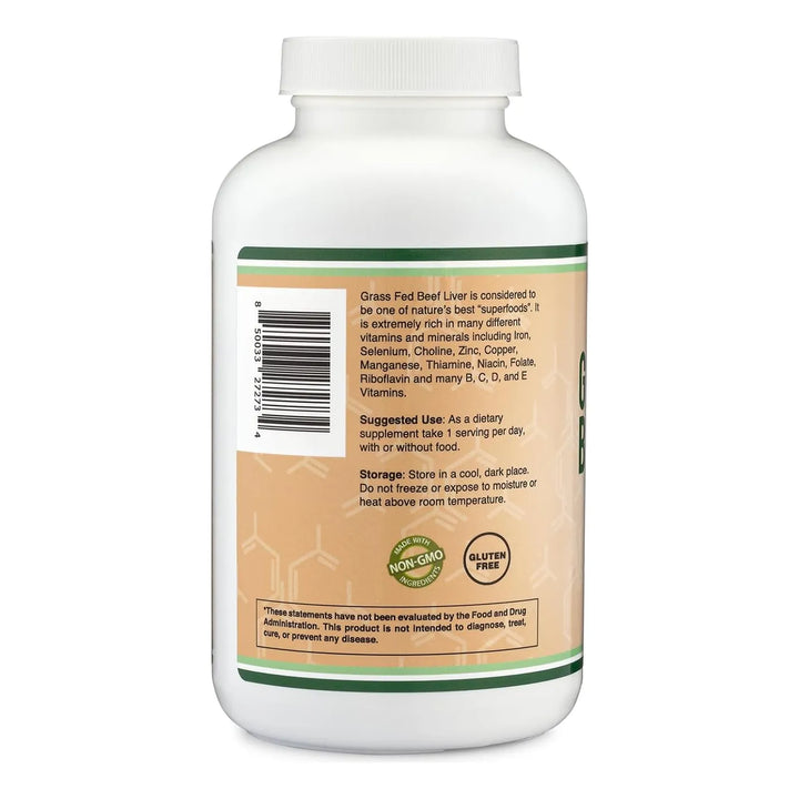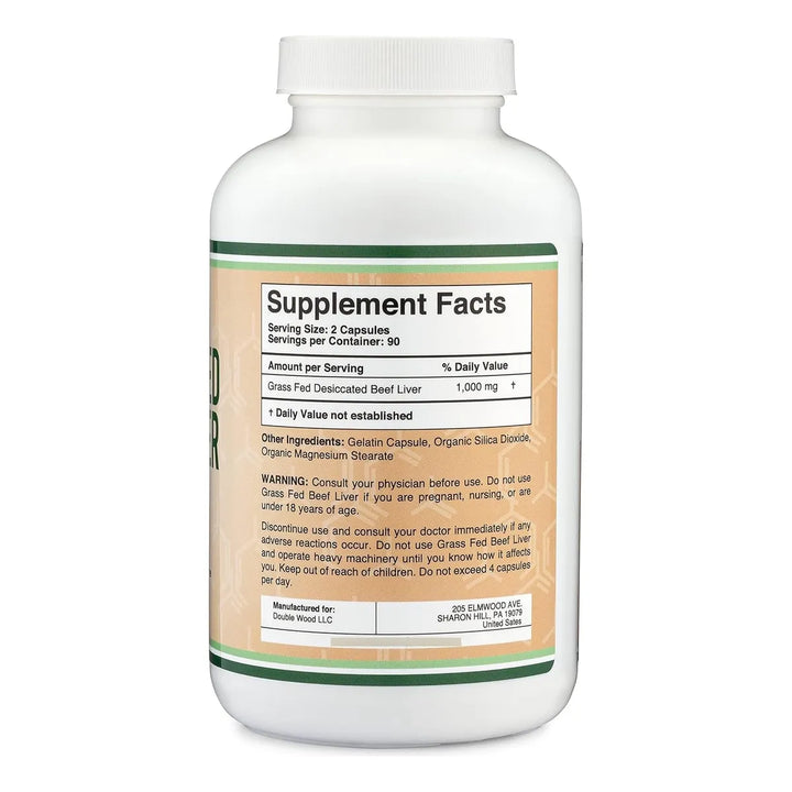 Capsulas De Higado De Res 1000 Mg Double Wood 180 Unidades Suplemento Natural