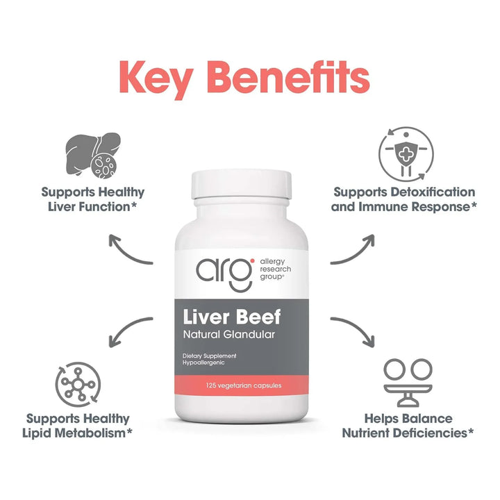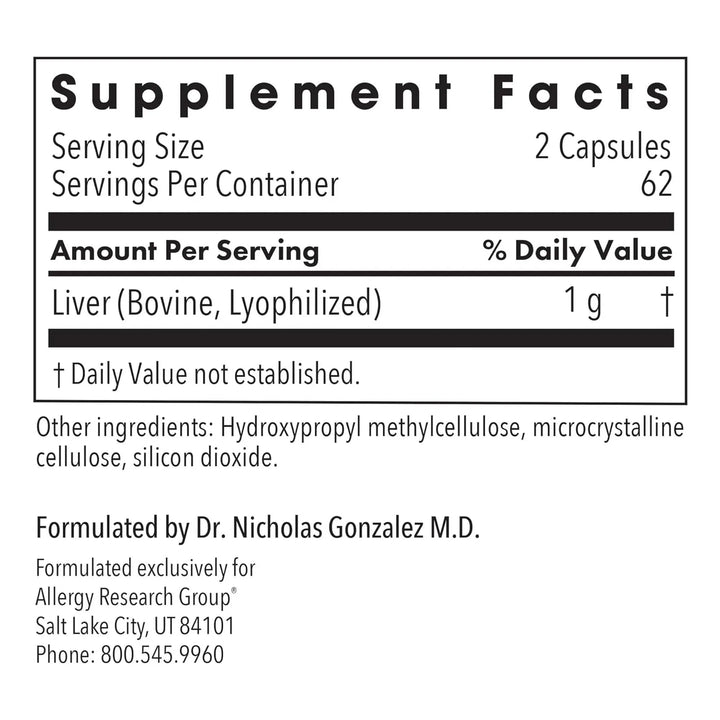 Cápsulas De Hígado De Res Alimentadas Con Pasto 1000 Mg Allergy Research Group Suplemento Hepático