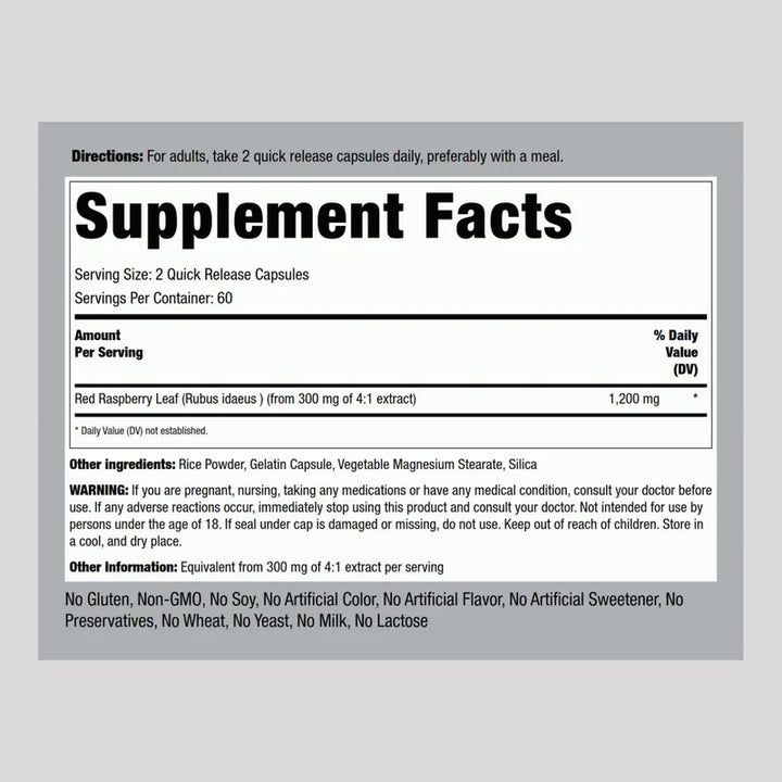 - 🌱Extracto Concentrado: 1200 mg de extracto de hoja de frambuesa roja en cada cápsula.