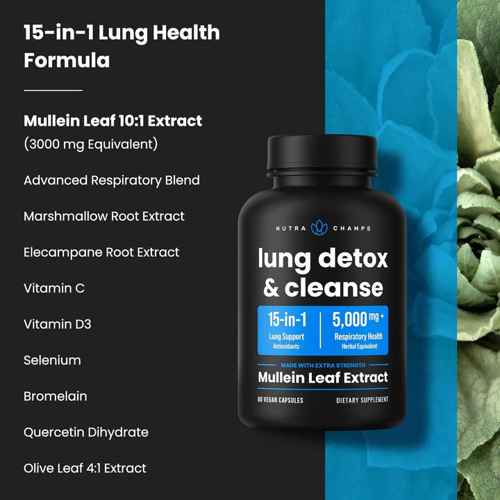 Cápsulas De Hoja De Gordolobo Limpieza Pulmonar 15 En 1 Fórmula Avanzada Para Respirar Mejor
