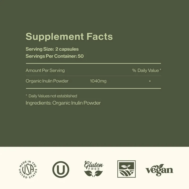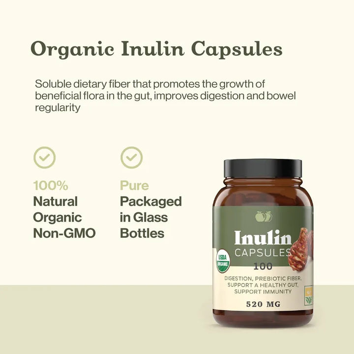 Las cápsulas de inulina orgánica están diseñadas para funcionar como un prebiótico, alimentando las bacterias beneficiosas en tu intestino. Esto mejora la digestión, fortalece el sistema inmunológico y mantiene los niveles de azúcar.