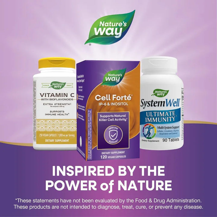 En Nature's Way creemos firmemente que la naturaleza es la solución definitiva a nuestros problemas. Por eso, durante más de 50 años, hemos buscado inspiración en el entorno natural para ofrecerte suplementos de calidad formulados específicamente para ti. Con estas cápsulas, obtienes la potente combinación de IP-6 e Inositol, ambos ingredientes reconocidos por su capacidad para apoyar tu sistema inmunológico y permitirte disfrutar de cada día al máximo.