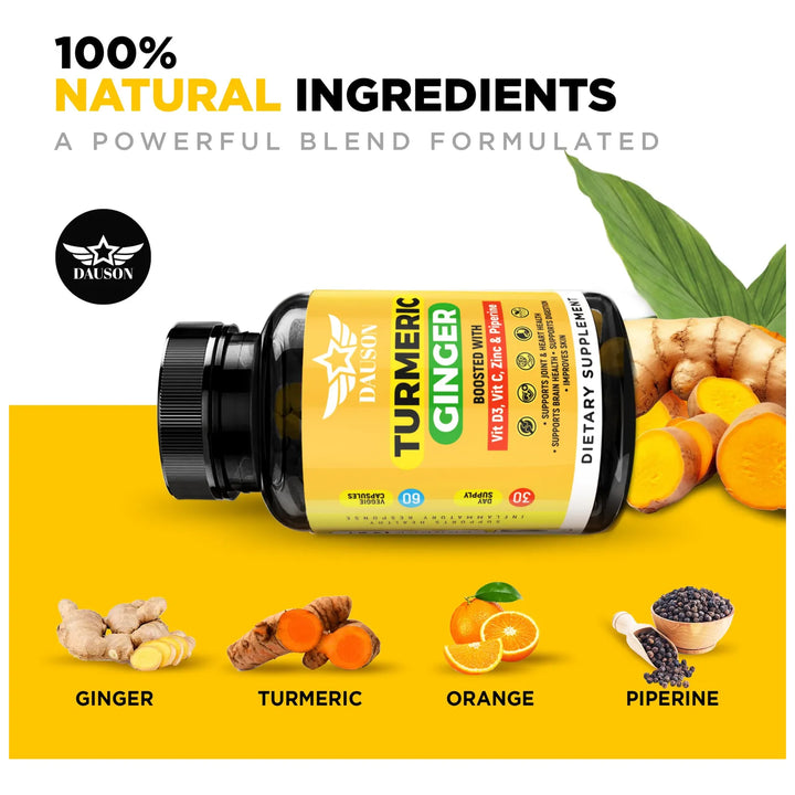 Cápsulas De Jengibre Cúrcuma Piperina Vitaminas Zinc Soporte Articular E Inmunológico