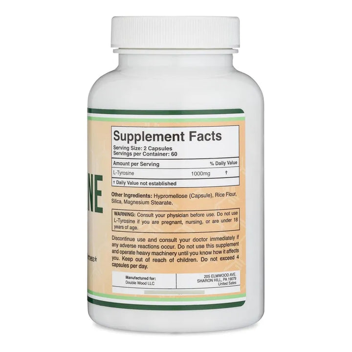 Capsulas De L-Tirosina 1000 Mg Double Wood Suplemento Vegano