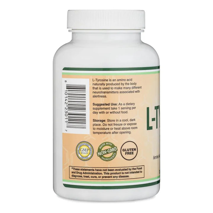 - L-tirosina 1,000 mg por porción: Potente dosis para optimizar tus funciones cognitivas. ⚡