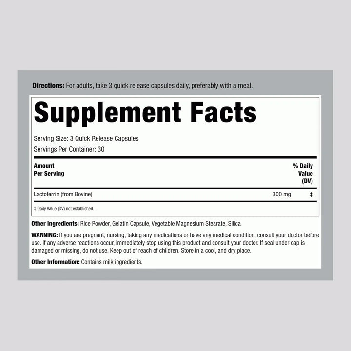 - Potencia y Pureza: Cada cápsula contiene 300 mg de lactoferrina liofilizada, garantizando máxima efectividad.