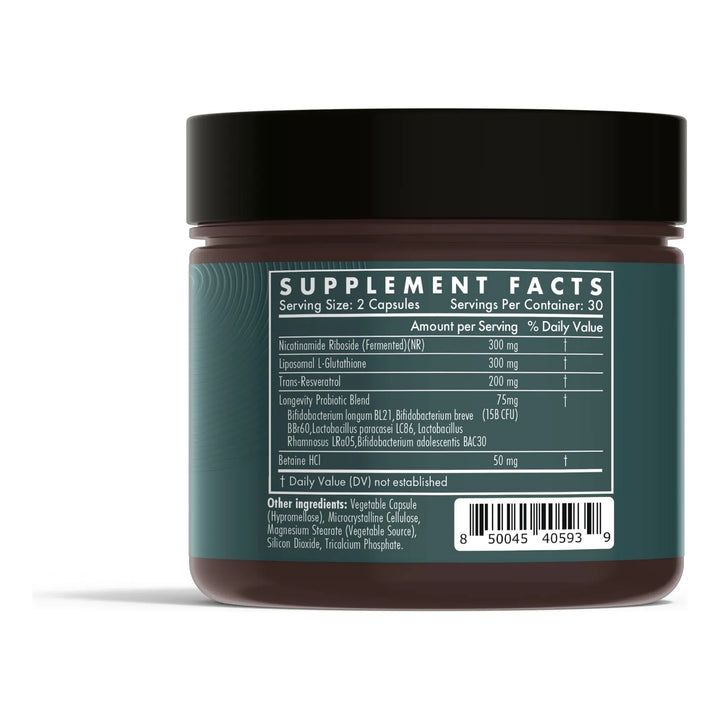Cápsulas De Longevidad Con NR Y Glutatión Para Energía Y Vitalidad 60 Unidades