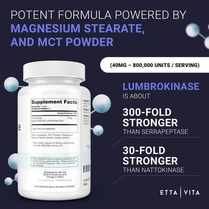 - Potencia Máxima: 800,000 unidades de actividad fibrinolítica por cápsula, 100 veces más fuerte que la nattoquinasa. 🔥