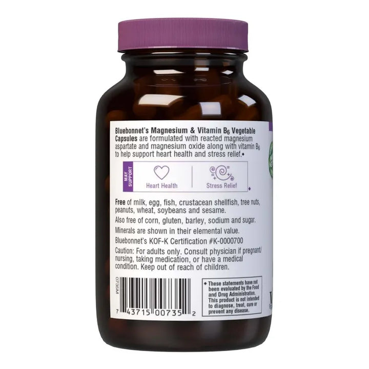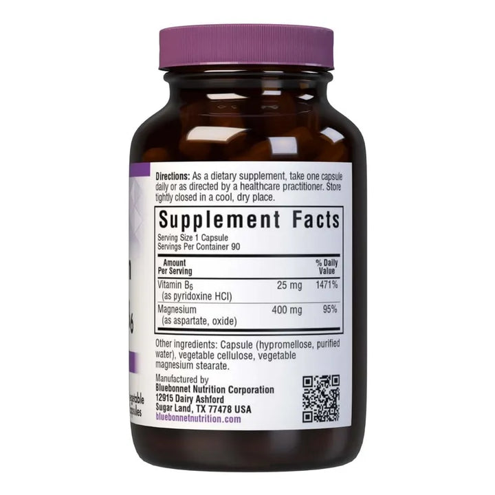 Cápsulas De Magnesio Con B6 90 Unidades Apoyo Energía Natural Bluebonnet