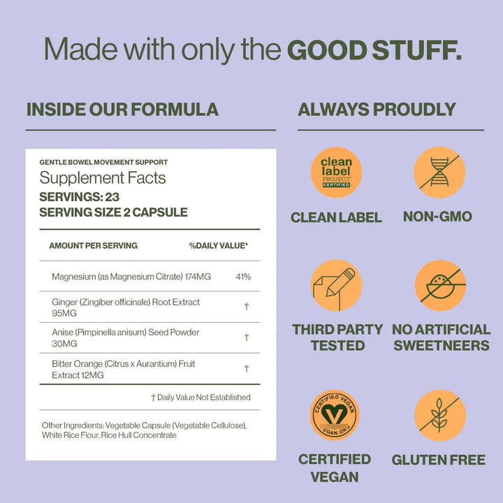 - 💚 Ingredientes Clínicamente Probados: Citrato de magnesio y naranja amarga para estimular el movimiento, combinados con jengibre y anís para calmar tu digestión.