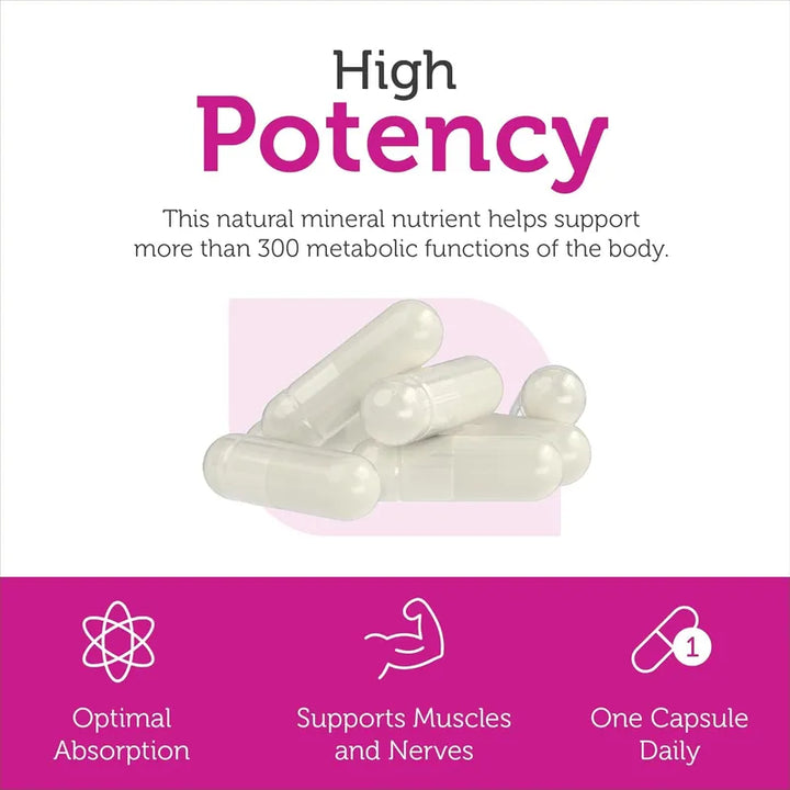 Olvídate de los suplementos difíciles de tomar, nuestras cápsulas de magnesio son suaves y fáciles de tragar, asegurando una experiencia sin complicaciones. Transformando más de 300 funciones metabólicas en tu cuerpo, no tardarás en notar los beneficios sorprendentes que este suplemento tiene para ofrecer.