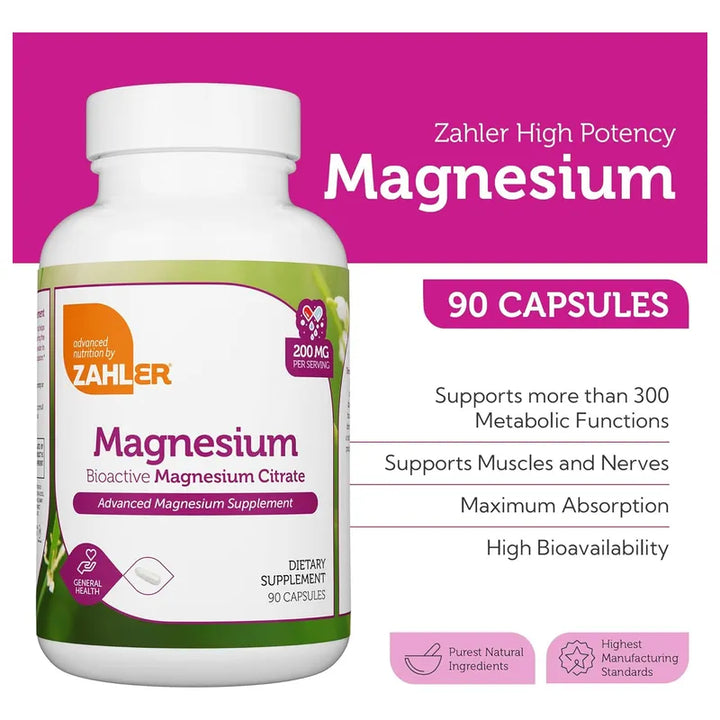 Capsulas De Magnesio Zahler 200 Mg 90 Unidades Facil De Tragar