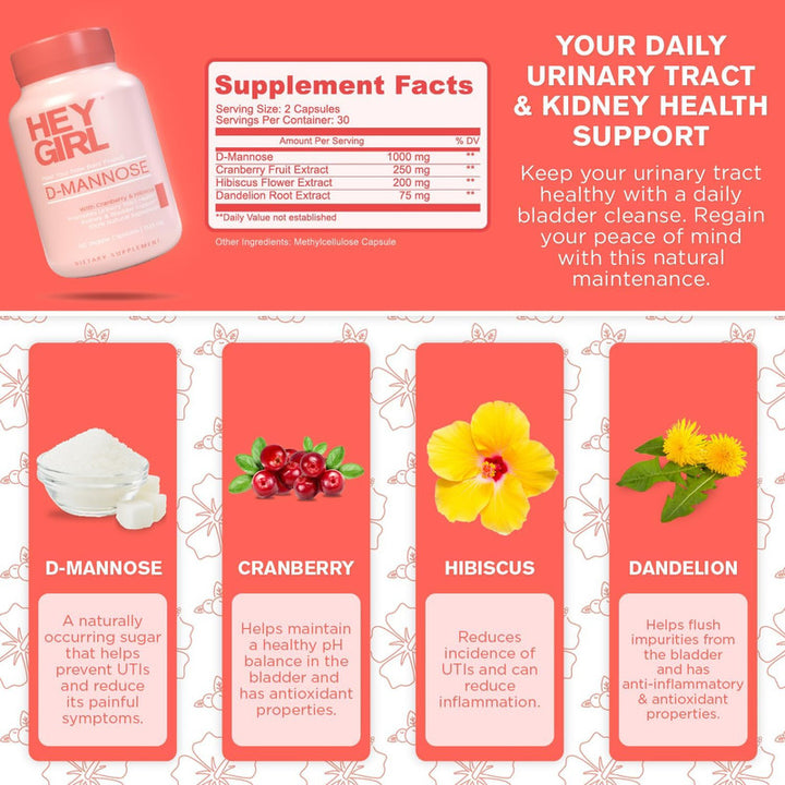 Sabemos lo invasivo y frustrante que puede ser vivir pendiente de esa próxima infección, de ese ardor al orinar que pareciera nunca terminar. Estas cápsulas están hechas para aliviar y prevenir, con una combinación exclusiva de ingredientes naturales: D-manosa, arándano, hibisco y diente de león. No es solo un suplemento; es tu aliado para mantener tu tranquilidad y bienestar constante.
