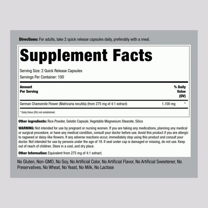 - Alta Dosis de Manzanilla: 1100 mg por cápsula para un efecto concentrado. 💊