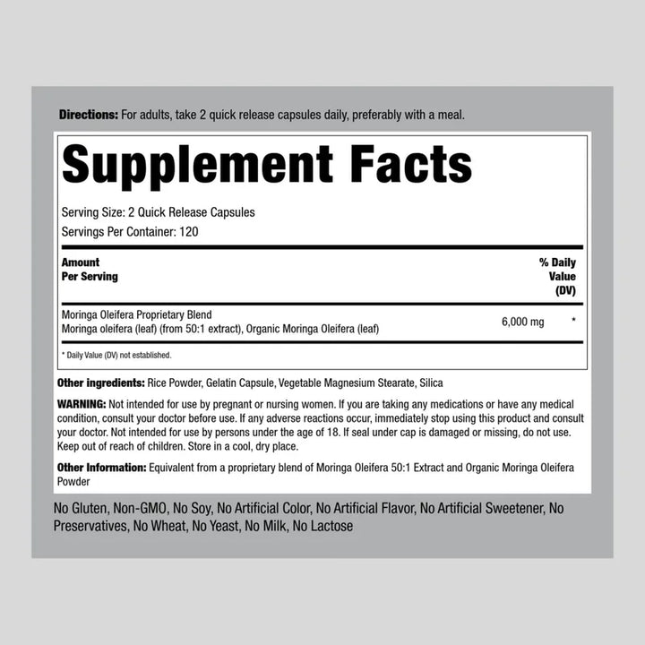 Capsulas De Moringa Oleifera 6000mg 240 Unidades Extracto Hierbas