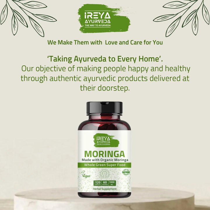 La moringa no es solo una moda; es un legado de más de 1000 años de sabiduría ayurvédica. Nuestro producto proviene de Moringa oleifera, la variedad más pura y potente, cultivada sin pesticidas ni químicos. Cada botella contiene 120 cápsulas, suficiente para 60 días de energía, vitalidad y apoyo nutricional. Sin rellenos, sin aditivos, solo moringa en su estado más puro. ¿Qué esperas para sentir la diferencia?