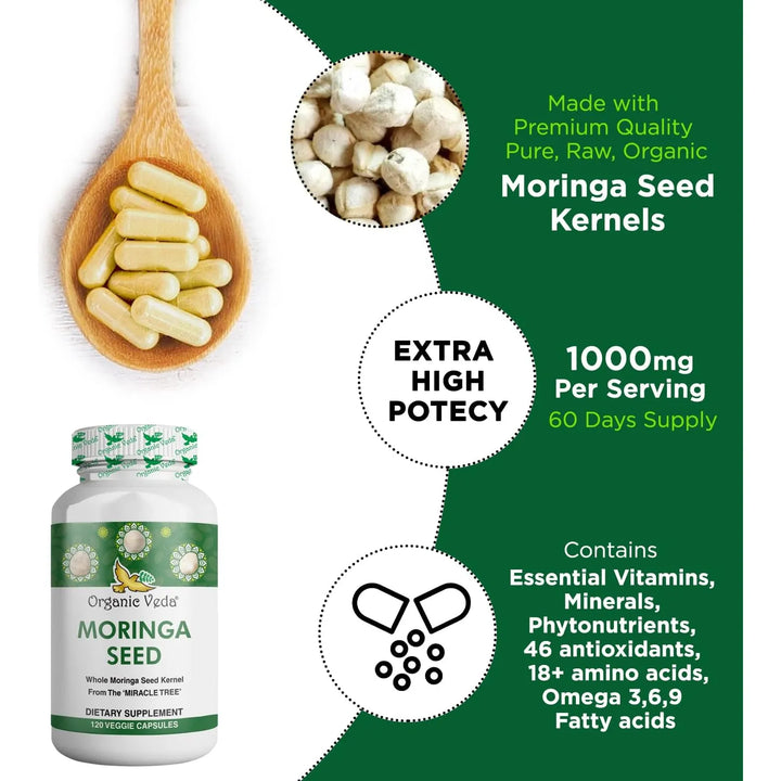 Capsulas De Moringa Organica 1000 Mg Energia Piel Radiante Digestión Saludable
