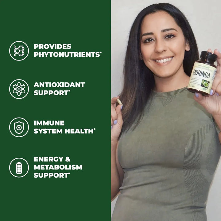 - 800 mg de Moringa Oleifera pura por cápsula para máxima potencia 💊