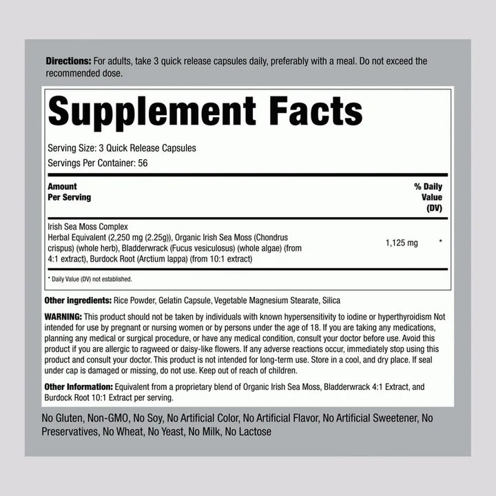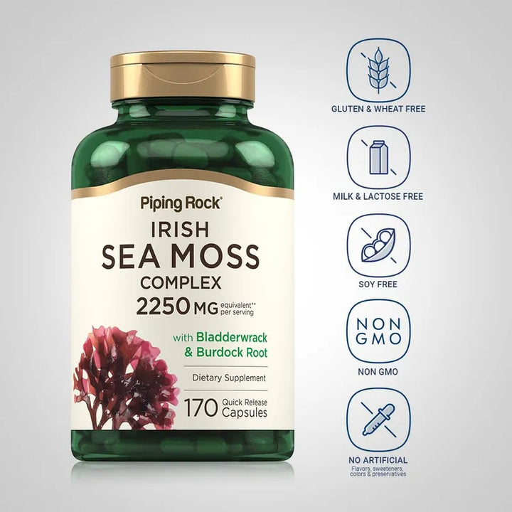 Capsulas De Musgo Marino Irlandes 2250 Mg Con Vejiga Y Bardana Suplemento Natural