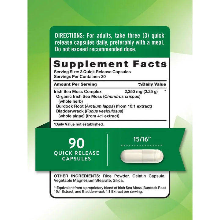 La potente combinación de musgo marino irlandés, vejiga y raíz de bardana, encapsulada en una formulación de liberación rápida, trabaja en sincronía con tu cuerpo para mejorar tu bienestar diario. ¿Buscas una solución eficaz y natural para elevar tus niveles de energía y cuidar de tu salud digestiva? Aquí lo tienes.