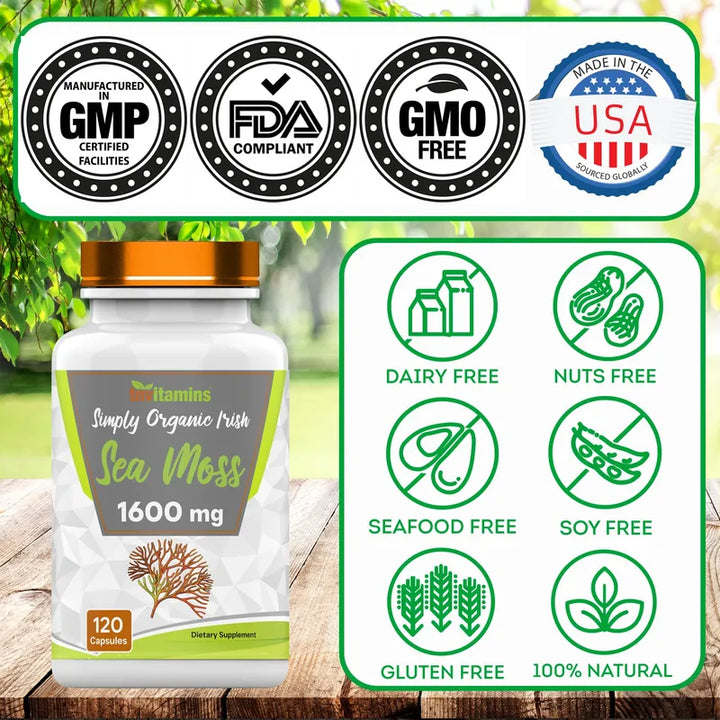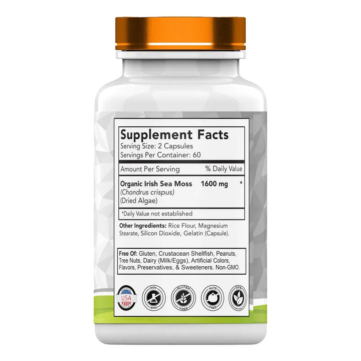 El musgo marino irlandés es la joya que has estado buscando. Con 1600 mg de musgo marino irlandés por porción, cada cápsula está cargada de minerales y nutrientes esenciales que tu cuerpo necesita para funcionar al máximo. Desde calcio hasta vitaminas A, C, E y K, este producto es más que un suplemento; es un impulso integral para tu salud.