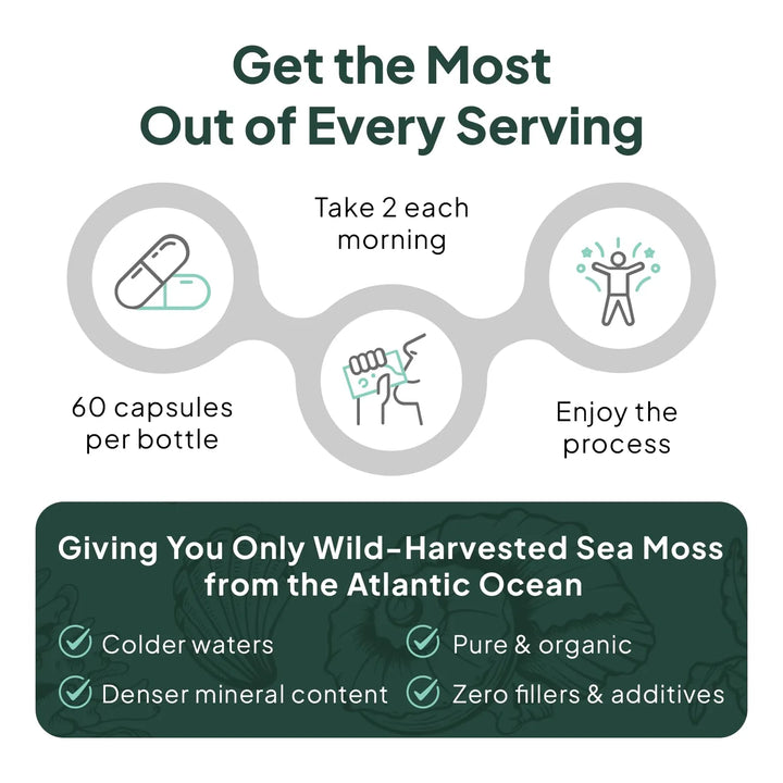 Imagina tener en tus manos un suplemento que no solo te brinda energía duradera, sino que también apoya tu salud pulmonar, tiroidea y desintoxica tu cuerpo de manera natural. Nuestras cápsulas de musgo marino silvestre irlandés orgánico, enriquecidas con clorella y vitamina D3, son la solución que tu cuerpo necesita para funcionar al máximo.