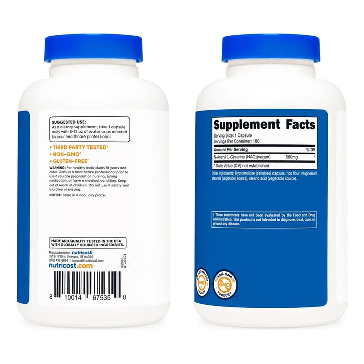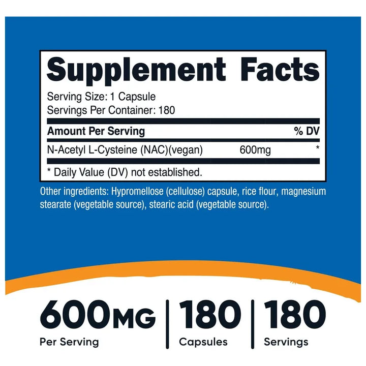 Cápsulas De N-acetil L-cisteína 600mg 180 Unidades Veganas