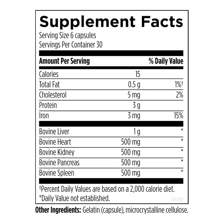 Este suplemento único combina hígado, corazón, páncreas, riñón y bazo en una fórmula sinérgica diseñada para apoyar tu salud celular y bienestar general. Cada cápsula contiene la esencia de ganado 100% alimentado con pasto, libre de hormonas, antibióticos y contaminantes, garantizando que recibas solo lo mejor para tu cuerpo.