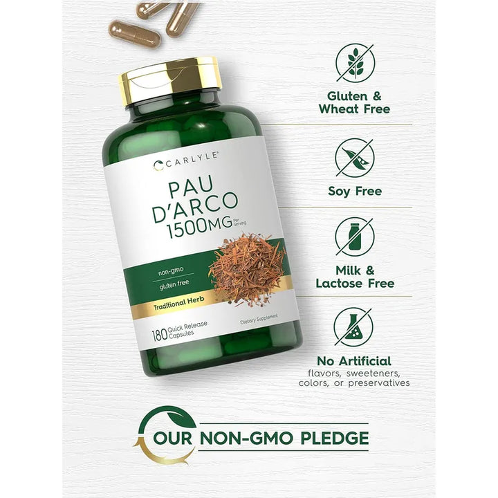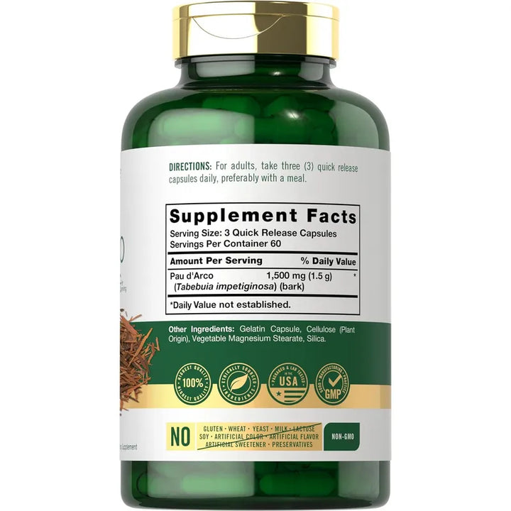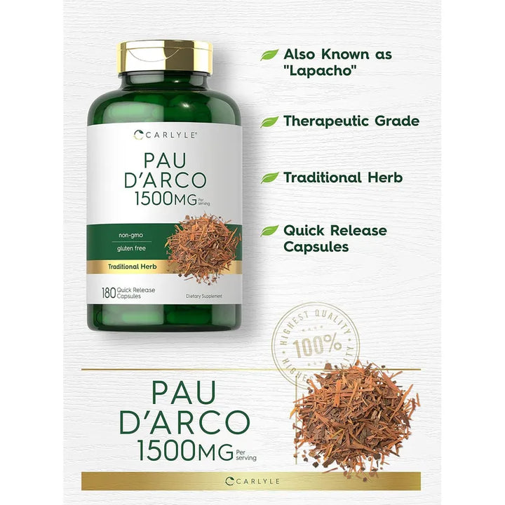 Capsulas De Pau D Arco 1500 Mg Carlyle 180 Unidades Sin Gluten
