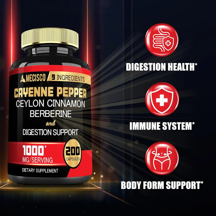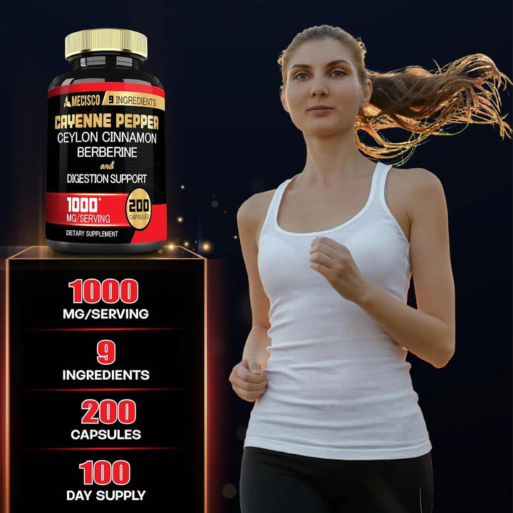 Capsulas De Pimienta Cayena 1000 Mg Con Curcumina Berberina Y Canela 200 Unidades
