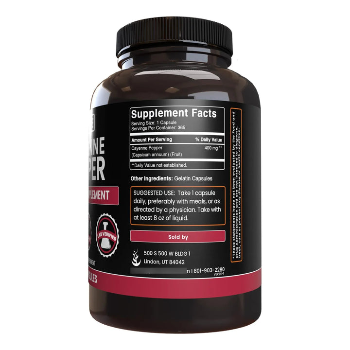 ¿Cansado de suplementos que prometen mucho pero no cumplen? Nuestras cápsulas están verificadas en laboratorio para garantizar que cada dosis sea 100% pimienta de cayena. No más ingredientes ocultos, no más decepciones. Solo lo que necesitas, en la forma más concentrada y efectiva.