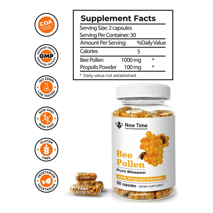 Cápsulas De Polen De Abeja Con Propóleos Suplemento Orgánico Para Energía Y Vitalidad 100 Puro