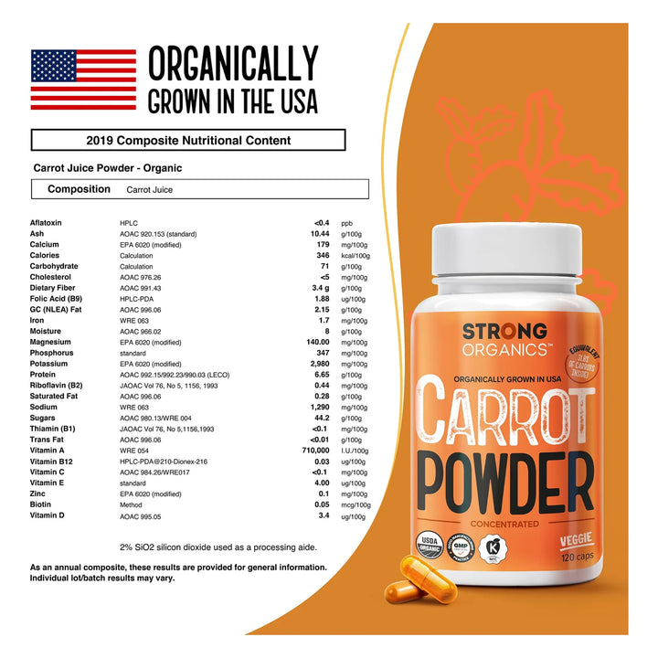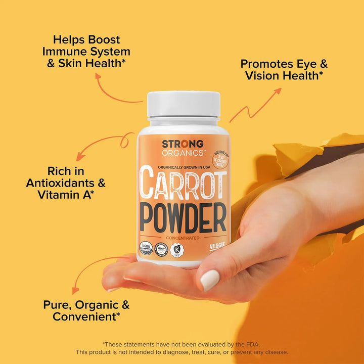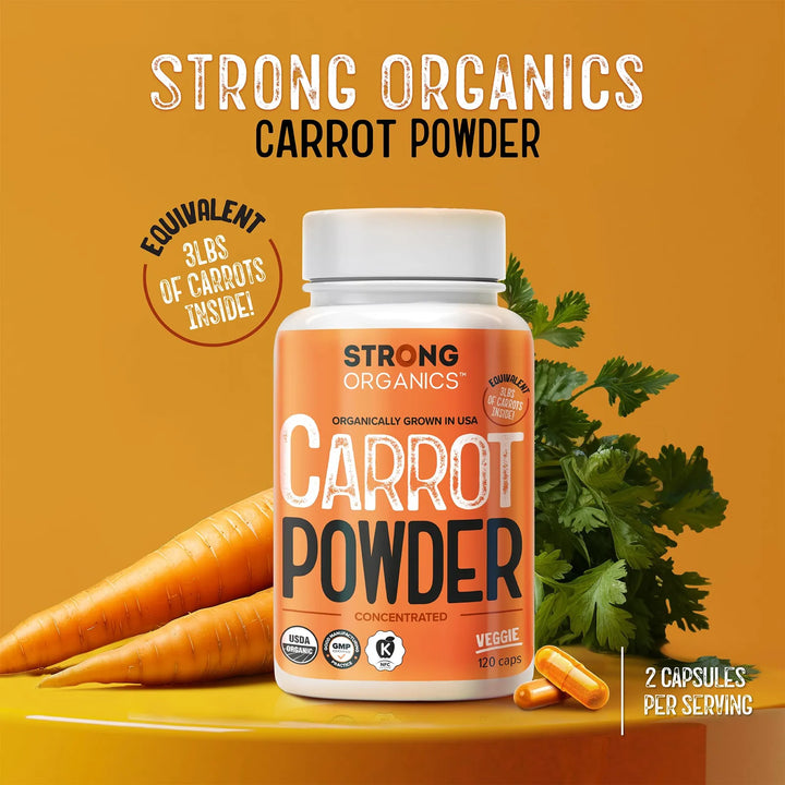 ¿Te imaginas obtener todos los beneficios de las zanahorias frescas en una simple cápsula? Nuestras Cápsulas de Polvo de Zanahoria Orgánica son la solución perfecta para quienes buscan una nutrición densa, conveniente y 100% natural. Cultivadas en Estados Unidos bajo los más altos estándares de calidad, estas cápsulas son tu aliado para una vida más saludable.