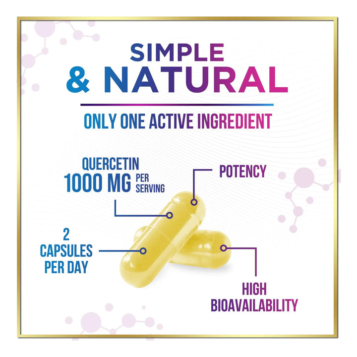 La quercetina es un flavonoide natural que actúa como un escudo para tu cuerpo. Con 500 mg por cápsula y 1000 mg por porción, este suplemento te brinda la dosis perfecta para combatir el estrés oxidativo y reducir la inflamación. ¿Sabías que el estrés oxidativo es uno de los principales culpables del envejecimiento prematuro y las enfermedades crónicas? Con nuestras cápsulas, estarás dando un paso crucial hacia una vida más saludable y equilibrada.