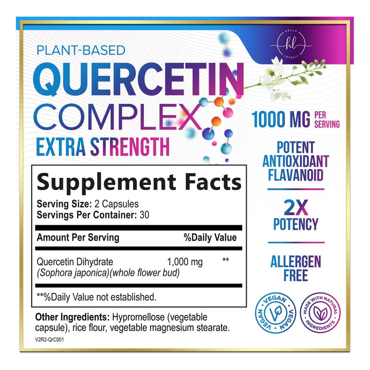 Cápsulas De Quercetina Extra Fuerte 500 Mg Antioxidante Salud Cardíaca E Inmunológica
