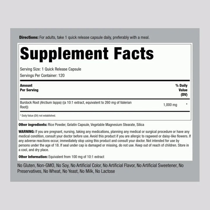 - Fórmula Concentrada: Con 1000 mg de extracto de raíz de bardana en cada cápsula, maximiza tu ingesta de nutrientes sin comprometer la comodidad.