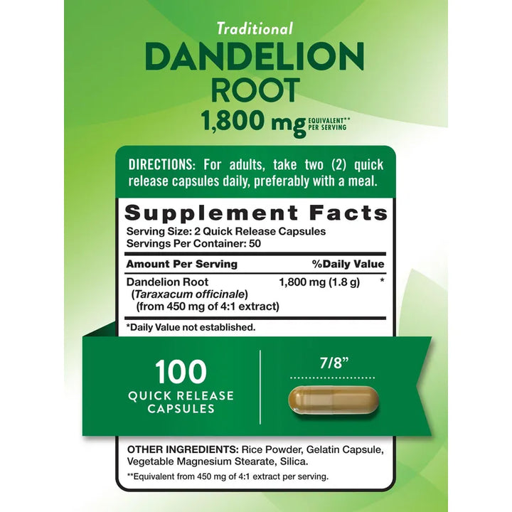 Capsulas De Raiz De Diente De Leon 1800 Mg 100 Unidades Suplemento