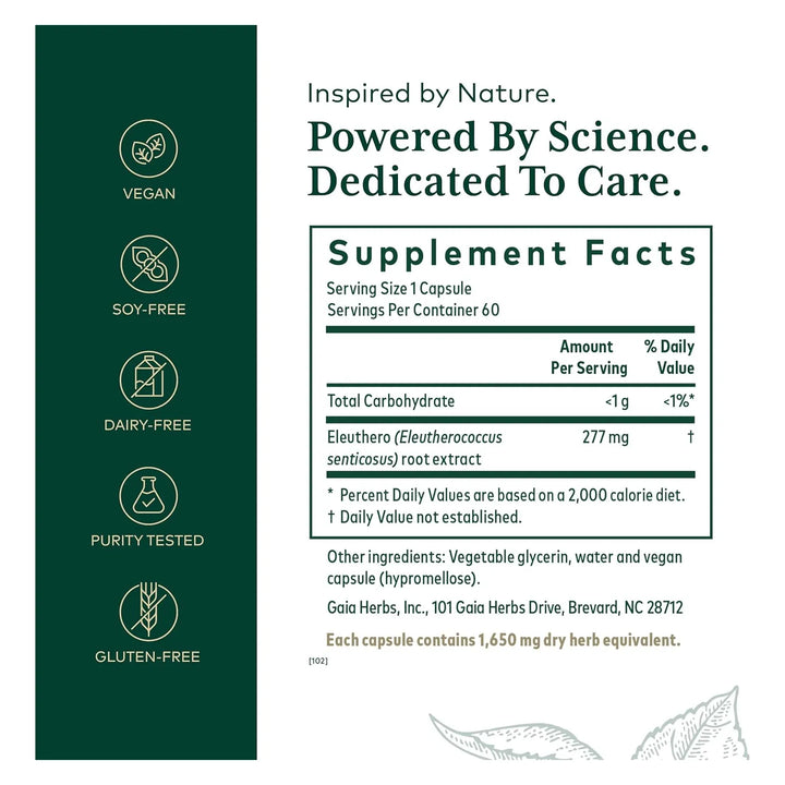 Cápsulas De Raíz De Eleuterococo Gaia Herbs PRO Energía Natural Y Resistencia Al Estrés 60 Fito Cápsulas