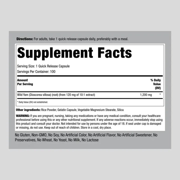 Capsulas De Raiz De Ñame Silvestre 1200 Mg 100 Unidades Liberacion Rapida