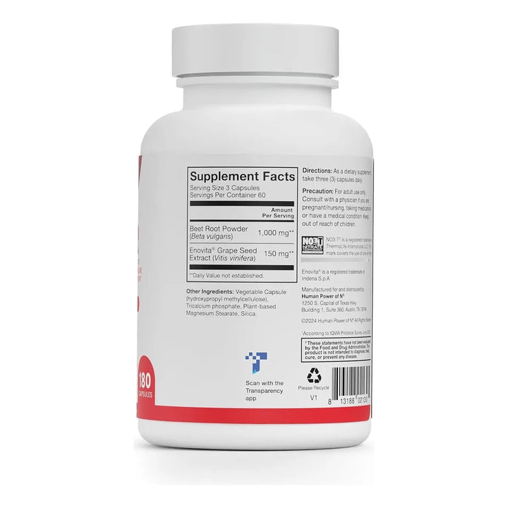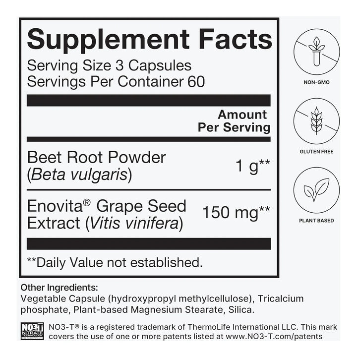 El polvo de remolacha premium en estas cápsulas se convierte en óxido nítrico al entrar en tu cuerpo, un compuesto clave que relaja y dilata los vasos sanguíneos. Esto mejora la circulación, permitiendo que más oxígeno y nutrientes lleguen a tus músculos y órganos vitales. El extracto de semilla de uva potencia este efecto, protegiendo además tus células con sus antioxidantes únicos.