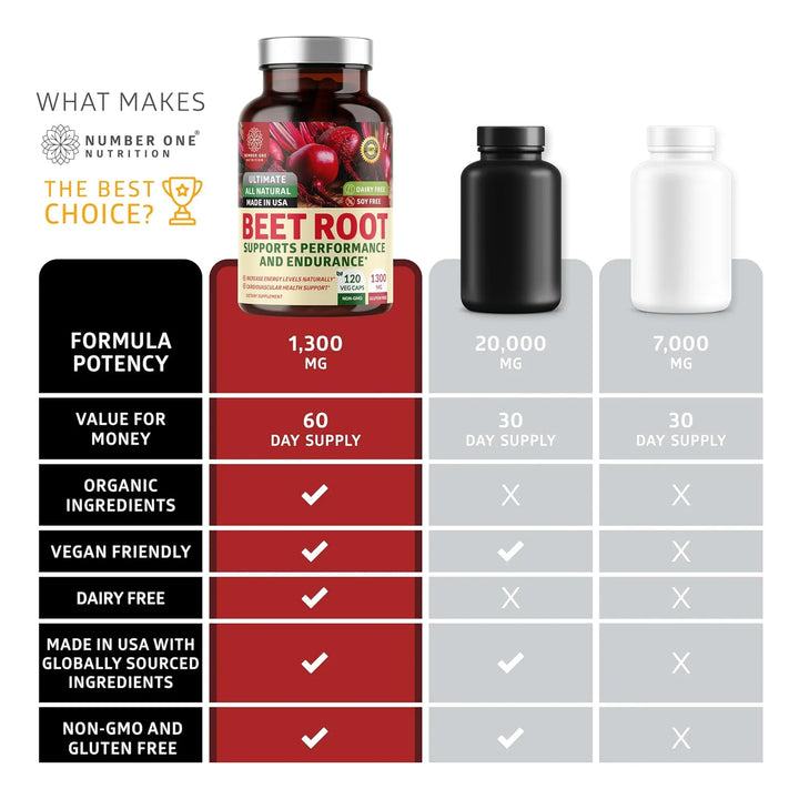 - 1300 mg de Pura Raíz de Remolacha Orgánica: Máxima potencia en cada dosis. 💪