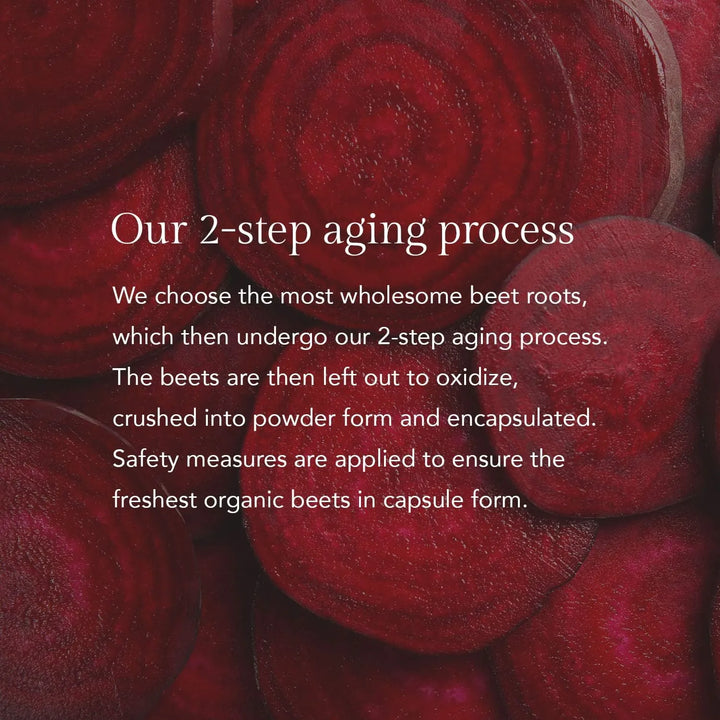 Nuestro exclusivo proceso de envejecimiento duplica el contenido de nitratos en la remolacha, eliminando el exceso de azúcar y potenciando sus beneficios. Imagina disfrutar de todos los nutrientes de la remolacha sin preocuparte por el azúcar, en una forma fácil de tomar y perfecta para tu estilo de vida activo.