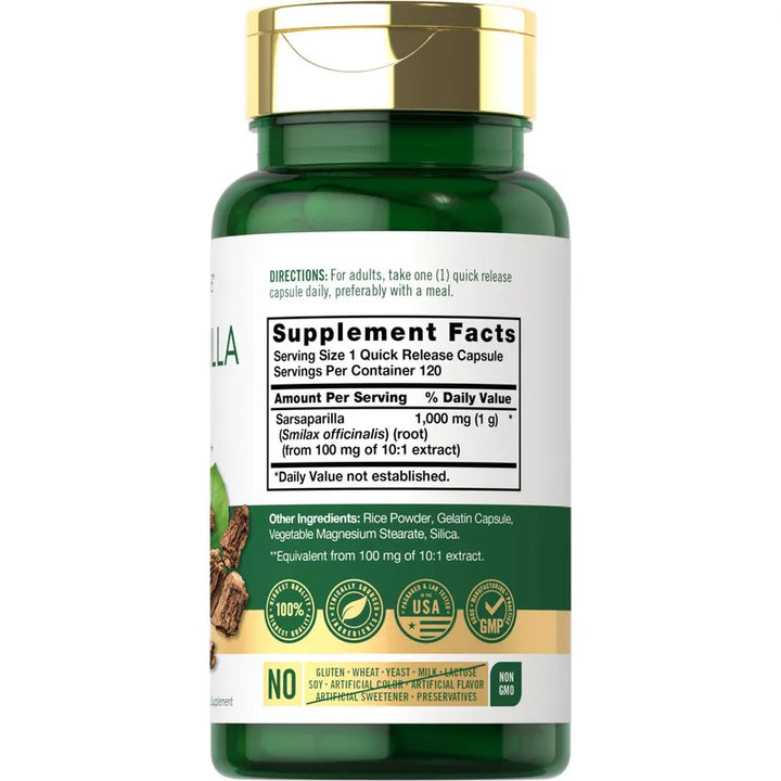 Cápsulas De Raíz De Zarzaparrilla 1000 Mg Suplemento Natural