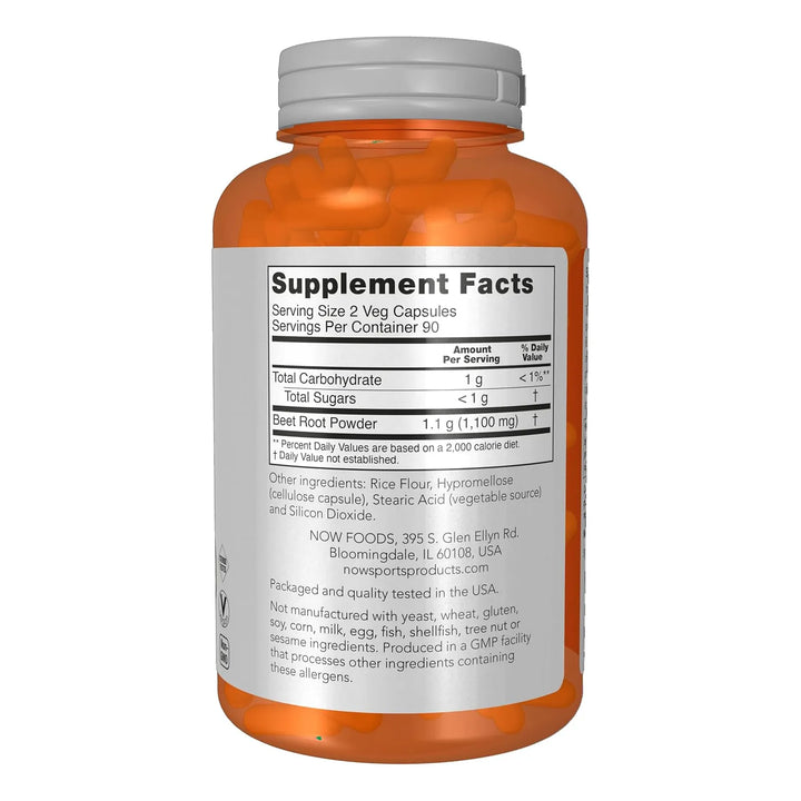 Cápsulas De Remolacha Raíz 550 Mg NOW Foods Nutrición Deportiva 180 Veganas