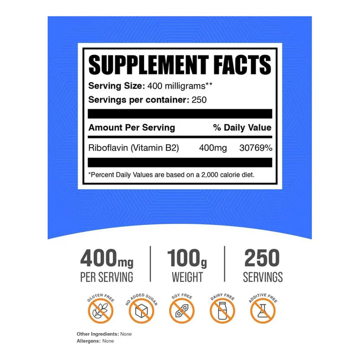 Las vitaminas deben ser más que un simple complemento en tu dieta; deben ser un compromiso con tu salud. Nuestro suplemento no solo te ofrece riboflavina pura, sino que también garantiza calidad y seguridad en cada dosis. Producido bajo estrictos estándares, tiene como objetivo proporcionarte consistencia y efectividad.