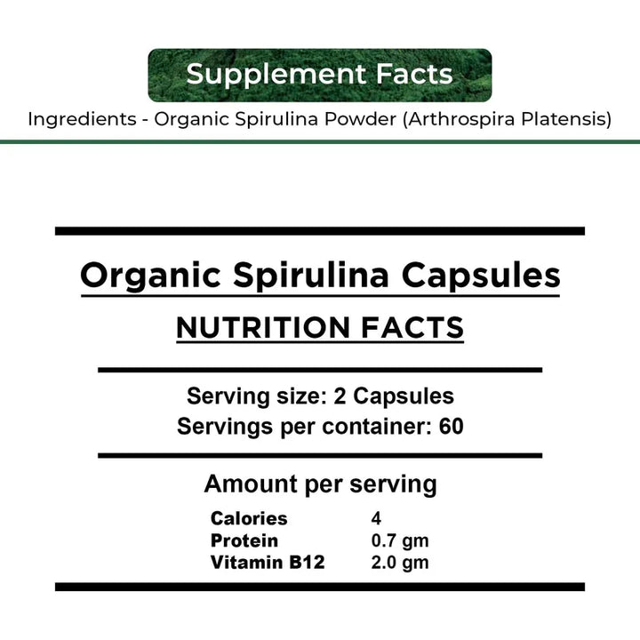 Actúa ahora y elige la salud por encima de todo. Con nosotros, no solo estás comprando un suplemento; estás adquiriendo un aliado para una mejor calidad de vida. Nuestras cápsulas de espirulina orgánica están esperando ser parte de tu viaje hacia una vida más saludable. Haz tu pedido hoy mismo y da un paso decisivo hacia una mejor versión de ti.