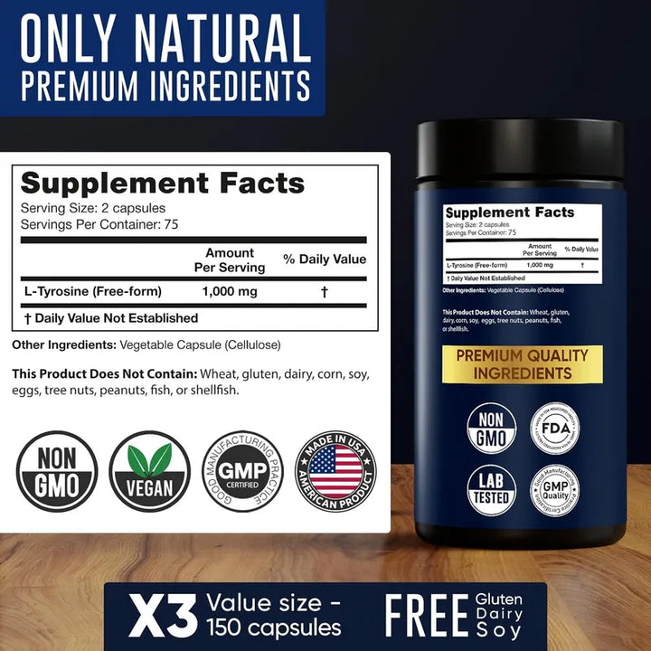 - ✅ 1000 mg de Tirosina por Porción: una dosis potente diseñada para maximizar beneficios. ⚡