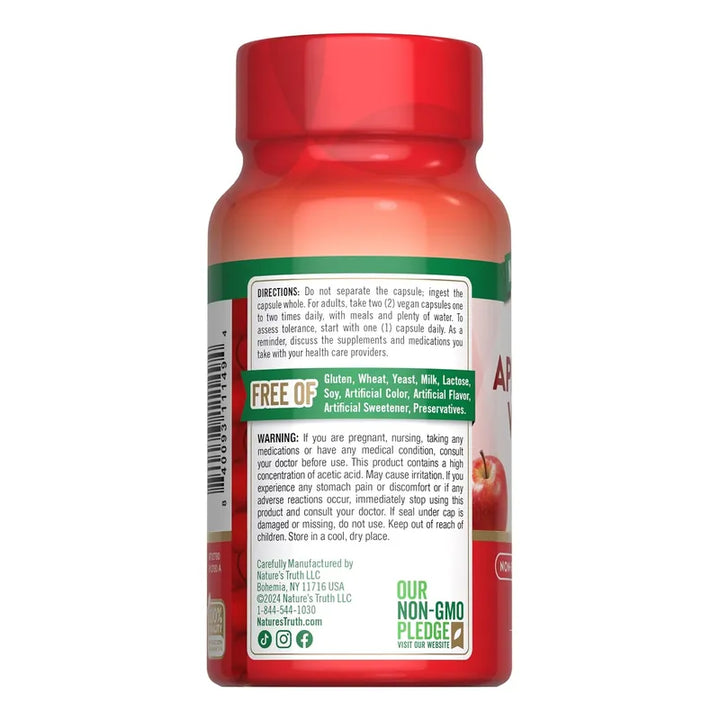 Con Nature's Truth, eliges una marca respaldada por generaciones de innovación vitaminífera, comprometida a proporcionar productos de la más alta calidad. No hay sorpresas, solo el poder natural del vinagre de sidra de manzana concentrado en cada cápsula. 🌟