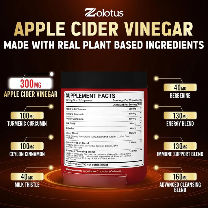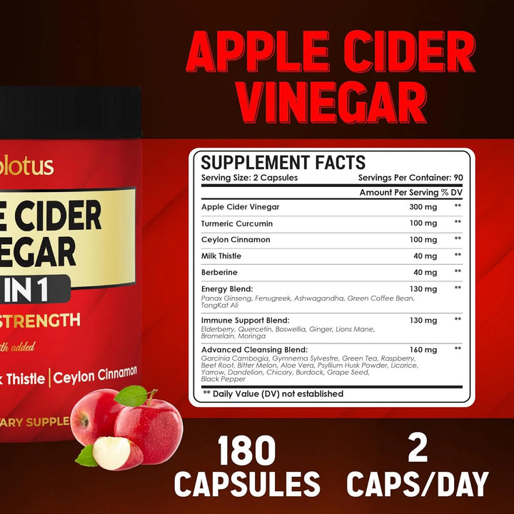 - 🌿 Fórmula 32 en 1: Más que solo vinagre de sidra, cada cápsula contiene una sinergia de ingredientes como cúrcuma, canela y saúco para un apoyo integral a tu salud.